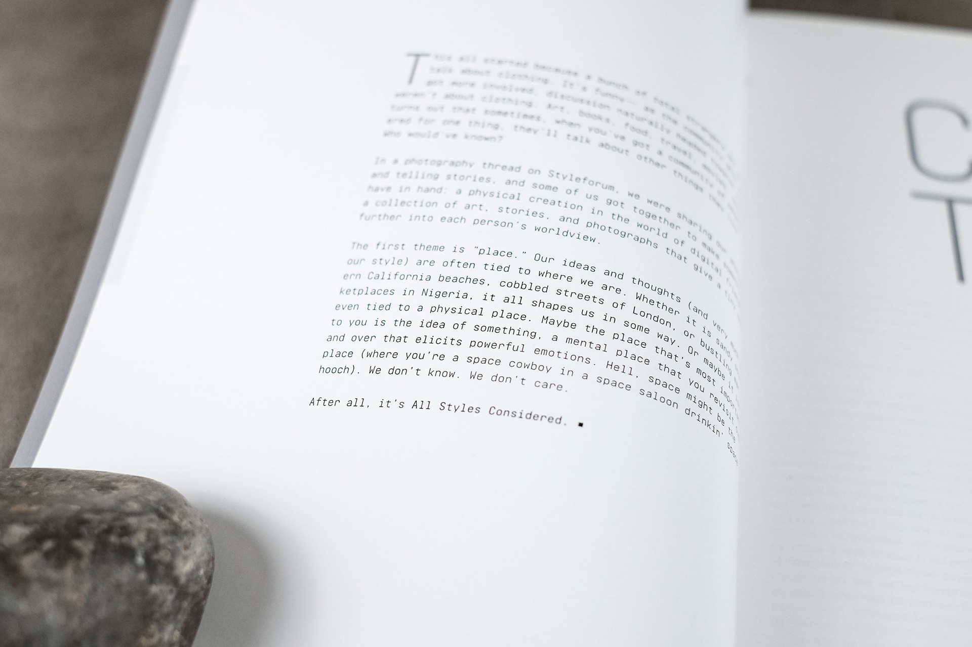 Issue 01 of 'All Styles Considered', a print/digital zine of user-submitted writing, photographs, and illustration.