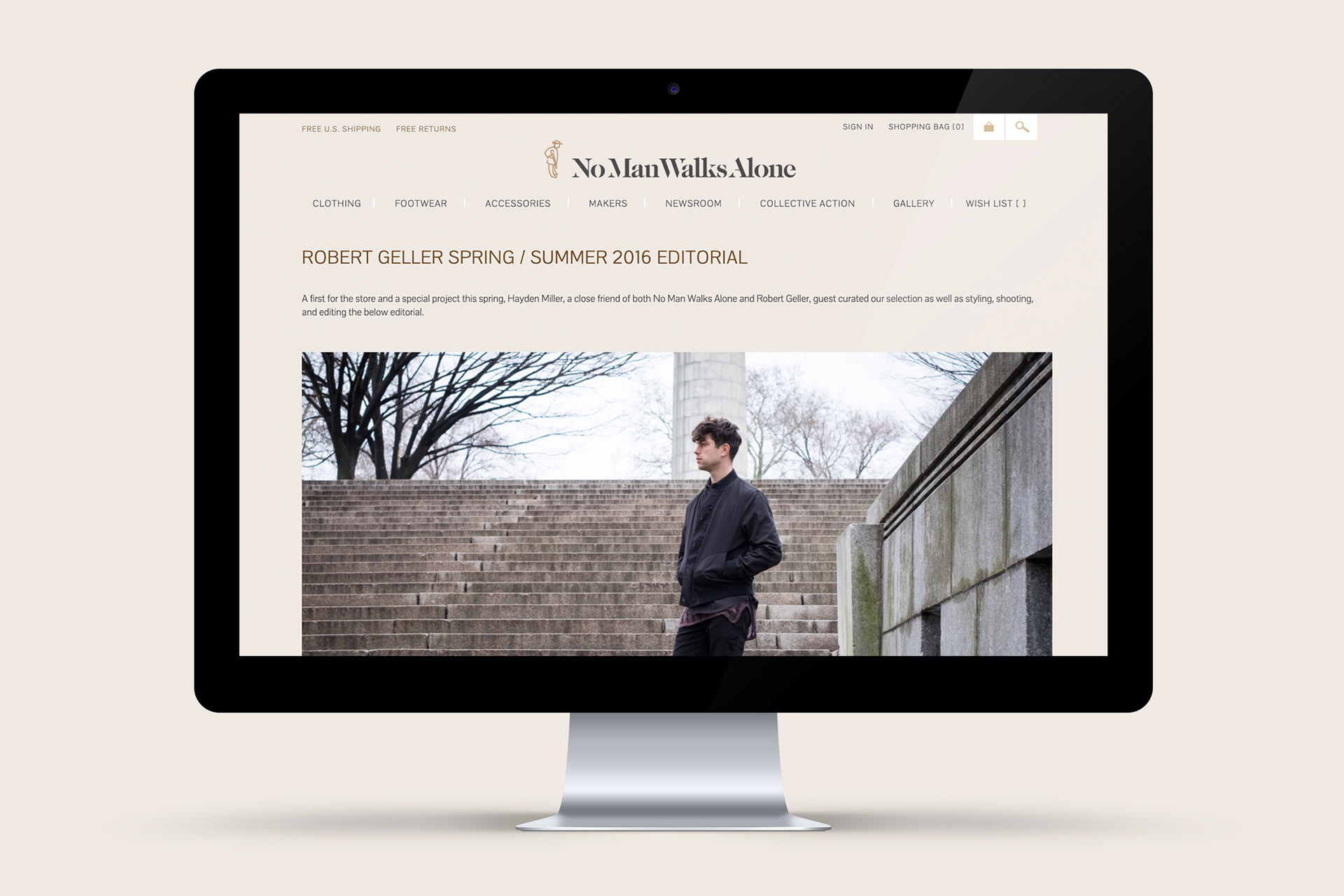 Styling and photography for a Spring/Summer 2016 editorial with online menswear retailer, No Man Walks Alone. Clothing by Robert Geller. Modeled by Andrew Wallace.