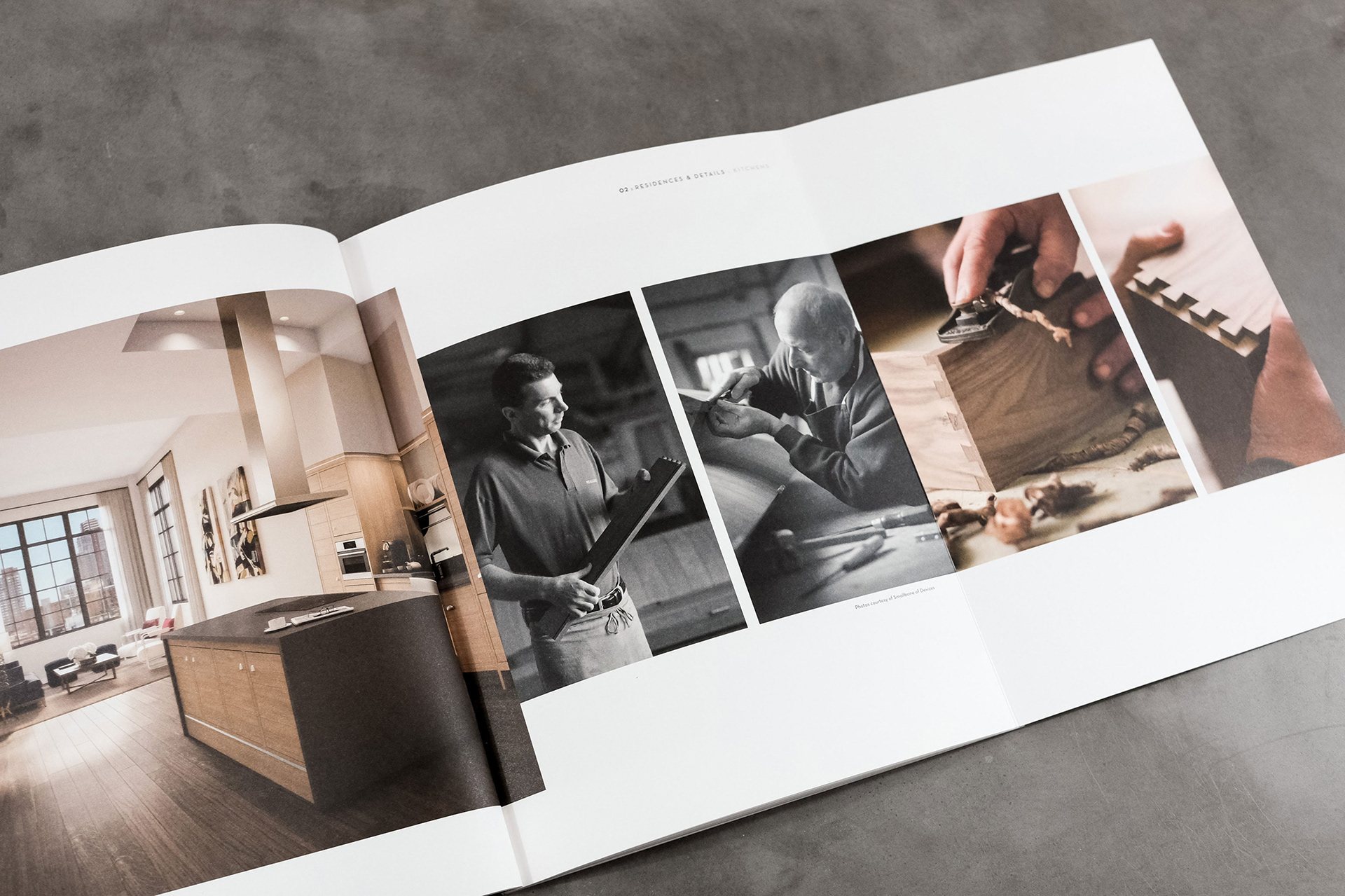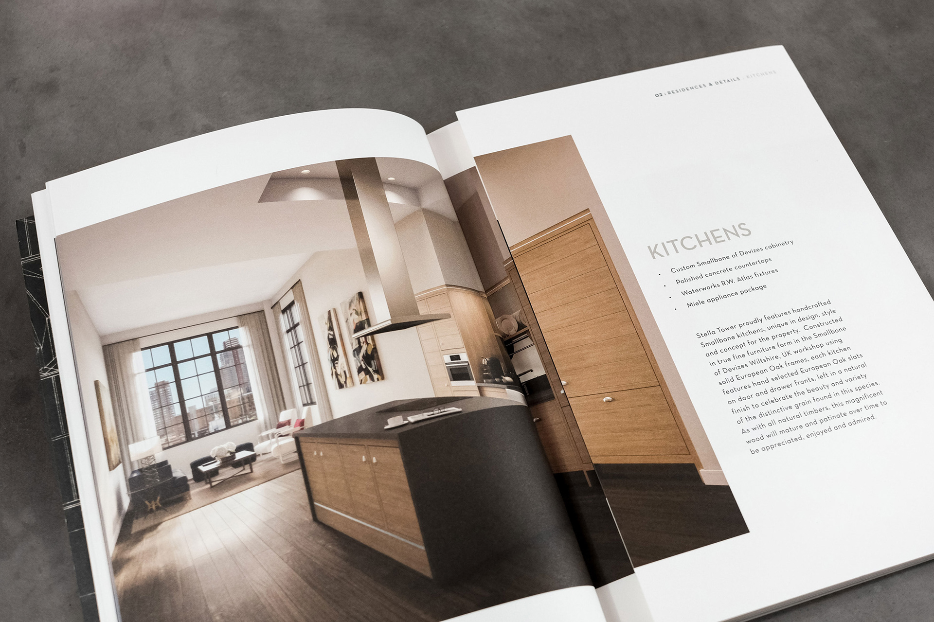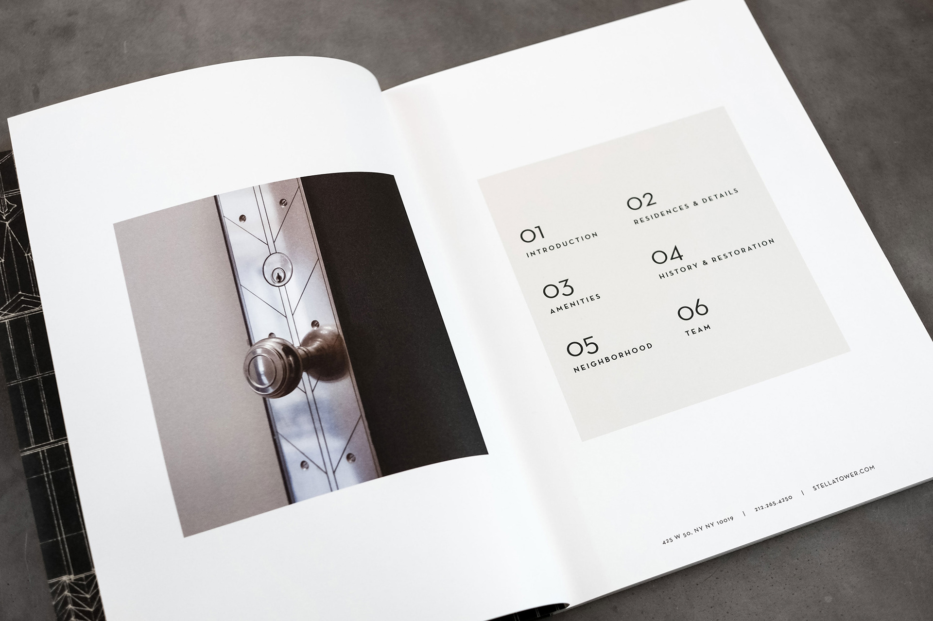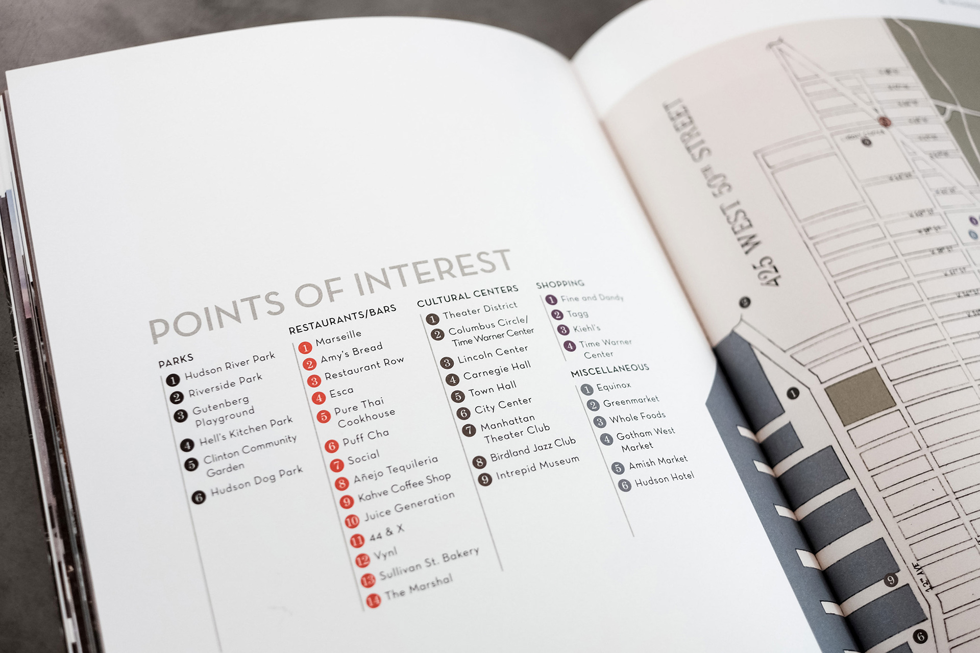 Branding and marketing materials for the Ralph Walker designed condo building in Hell's Kitchen. Pattern is derived from the building's original architectural sketches from the 1920's.